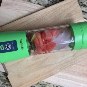 This blender is awesome. I have been using it for a while and I simply love how convenient it is. I can charge it and bring it to work or leave it on my desk. Whenever I am feeling hungry and want something to drink, I can blend some fruits in it and have a smoothie. The charge lasts for a while and the blender itself is not very big in size which makes it convenient to bring around everywhere. In fact, you could even use it as a water bottle if you want. This product is a great idea and I am surprised that the idea is not more popular.