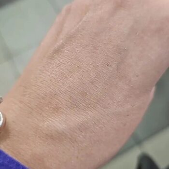 This product looks gorgeous on the skin, with the initial bronze appearance in the bottle transforming into a lovely pink hue upon application. Despite being pale, I found the color to be flattering. Additionally, the subtle baby powder scent, with hints of floral notes, adds to the pleasant experience. Though not overpowering, the fragrance lingers subtly after application.