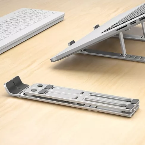 I spent a long time looking for various stands. I finally settled on this stand because it met my need for slim portable device that I could tuck inside my laptop carrying case and still be stable and strong enough with multiple viewing angles. I got everything I was looking for and more. The stand is well made and very light. It is easy to open and close with minimal effort. It comes with a little pouch to tuck the stand into with drawstrings. The finish matches my HP laptop perfectly. The rubberized pads hold my computer nice a still, no concerns about slipping or moving while I type. I highly recommend this stand to anyone that needs a stable light weight stand for their laptop that is portable and compact.