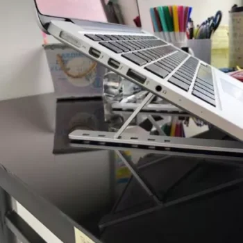 I never thought I’d need a laptop stand, but after getting this and using it I can see why so many people use them. This stand is extremely light but really sturdy. The rubber feet hold your laptop in very well and keep it from moving on your desk. I’m using it with a 2012 13” MacBook Pro and it fits perfectly. An added bonus is that it keeps the laptop much cooler and less likely to overheat. It has six different height levels. The second to lowest is the best in my opinion. It folds up nicely and comes with a faux-velvet drawstring pouch. Overall I’d highly recommend this for using as a portable laptop/tablet stand. Amazing value for the price.
