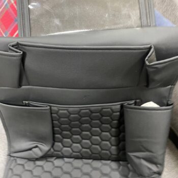 Crafted from eco-leather, this seat back organizer is waterproof and easy to clean with a damp cloth. The clear TPU pocket is also waterproof and safe for babies. All materials used are vegan and non-toxic.