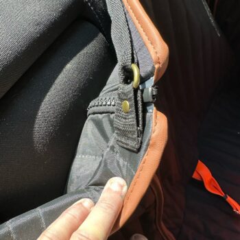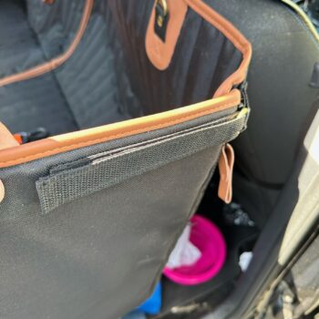 I like the idea they have on the new straps they’re using that go around the headrest. Instead of being stretchy or just one length, all of them are now adjustable in length so you can make it smaller for smaller cars, which will help keep the hammock raised and even, or lower it if you have a big car. Awesome idea. Really like it because on the old one just barely on the top corners of the seat, my girl could get by and would get a little slobber on it. I was able to raise it that extra inch or two, problem solved. They also added a third pair of buckles for cars that have 3 headrests in the back for more support.
