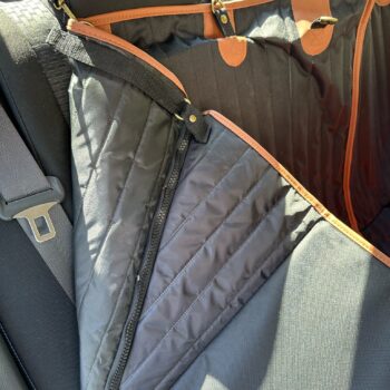 They also made this one super portable. Pop it out of the car real quick, and you can fold it up and it has a strap to close it and a handle to carry it. It’s surprisingly light and folds up REALLY small for how big it actually is. For people who are not like me and dedicate his entire back seat for his dog, and take the hammock out frequently, will love this.