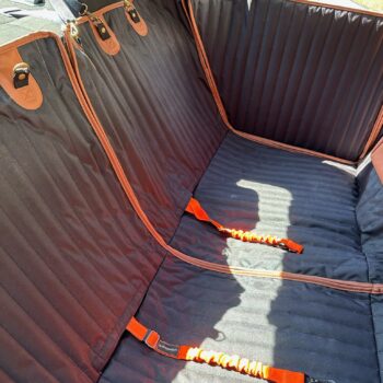 This car dog hammock fits most vehicles with detachable headrests. It also features a unique split design – just undo the zipper in the middle to save space and use this dog hammock on one side of the seat. And when not in use, you can easily fold it up and carry conveniently by the handle. Perfect for travel lovers!