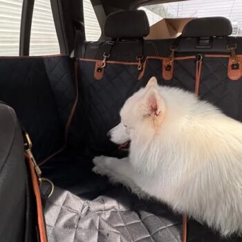 This car dog hammock fits most vehicles with detachable headrests. It also features a unique split design – just undo the zipper in the middle to save space and use this dog hammock on one side of the seat. And when not in use, you can easily fold it up and carry conveniently by the handle. Perfect for travel lovers!