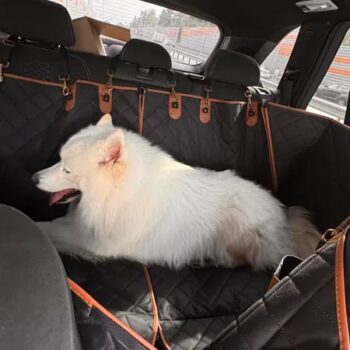 This dog hammock has become an essential for our family road trips! It's easy to install and stays put thanks to seat anchors and sturdy straps. I love how it protects my car seats from spills with its waterproof fabric.
