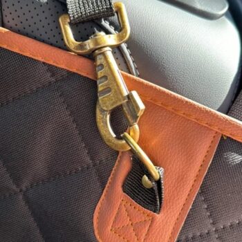 Metal buckles and zippers, nylon straps, seat anchors, and a non-slip bottom layer keep this dog seat cover firmly in place when on the road. Plus, installation is simple and takes just a couple of minutes.