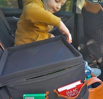 Our Magic Box organizer is fully collapsible – you can easily fold it up when not in use to save space. Plus, it fits perfectly between two child seats or two passengers in the back!