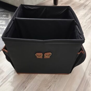 I bought this thing to keep all my car cleaning stuff organized in my trunk. And it really does the job! I was worried that I got one that was too big, but it turns out, I'm glad I got the larger size! All my car cleaning supplies fit nicely in the different compartments. So far, this product is really great! It helps me keep everything organized and tidy.