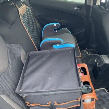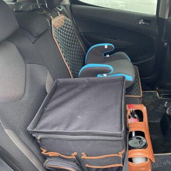 Our Magic Box organizer is fully collapsible – you can easily fold it up when not in use to save space. Plus, it fits perfectly between two child seats or two passengers in the back!