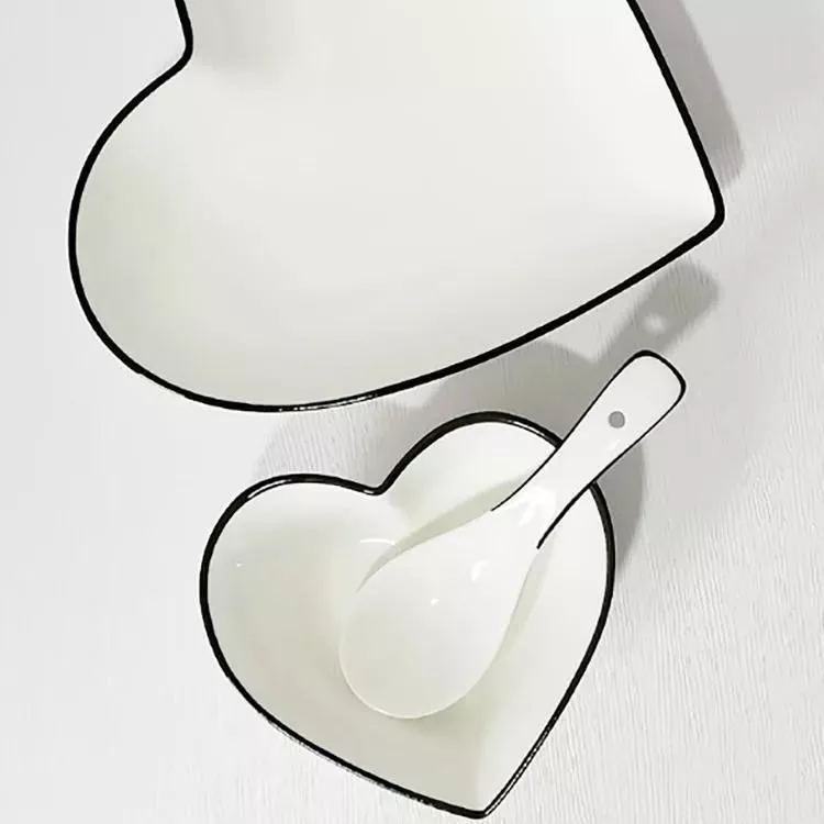 Our heart-shaped ceramic plate is not just a dish; it’s a statement of love and a testament to your fine taste in tableware. Its solid pattern, complemented by a distinctive black line, makes it versatile for any occasion, from casual breakfasts to more formal dinners. The heart shape is not only visually appealing but also symbolizes care and affection, making it perfect for serving dishes to your loved ones.