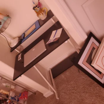 This desk is ideal for anyone looking to make the most out of limited space. Whether you’re a student in a dorm, living in a one-bedroom apartment, or need a compact workstation in your home, this desk is designed to fit seamlessly into your life.