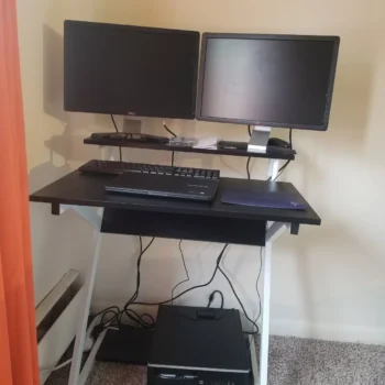 Simple assembly, perfect for my small room. The monitor shelf saves so much space. Definitely recommend.