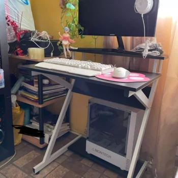 I needed a small, sturdy desk for my cramped living space, and this Z-shaped desk did not disappoint. Its design is both practical and sleek, fitting perfectly in my room. The monitor shelf and bottom shelf provide valuable extra space and storage. Assembling the desk was easy, and I'm impressed with its stability. This desk has significantly improved my work-from-home setup.