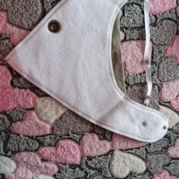 The pacifier holder snaps on the bib and stays flat and stylish. You will not regret buying this bib because it is very very convenient.
