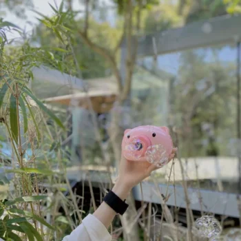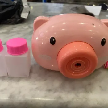 Bring a one-of-a-kind bubble-blowing pig to any party or child gathering for lighthearted fun indoors or outdoors. Our Cute Pig Bubble Maker is camera-inspired, complete with a convenient carry strap for on-the-go bubbles and joy.