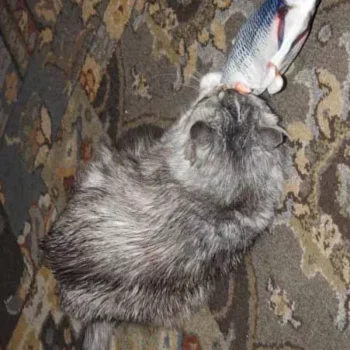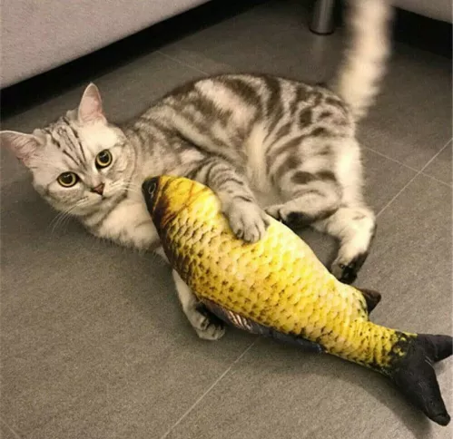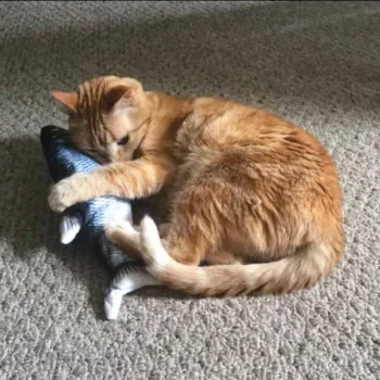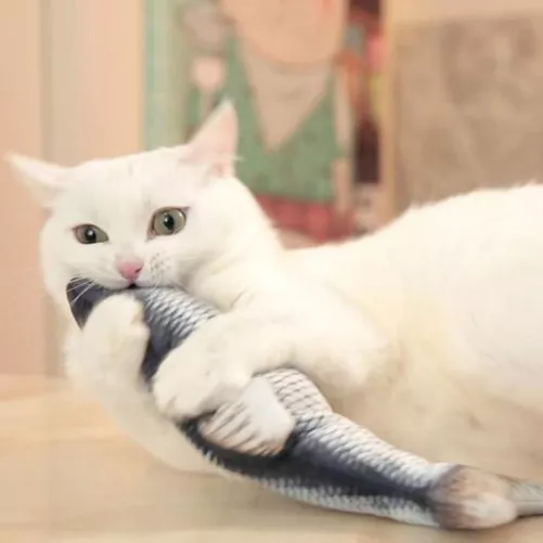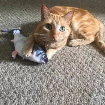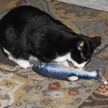 When ordering this, I wasn’t sure how the cats would take it, whether it would be fun or just plain too scary for them. Well, it’s THREE/three cat thumbs UP at our house! Each of them absolutely LOVES this crazy fish toy, due in large part, I am sure, to the delightful catnip aroma. The grand kids love it as well, although one of them jumped and squealed the first time they picked it up and it moved, which was grand. So glad to have come across this fun toy. It arrived charged and ready and I still have not had to charge it yet, so it holds its charge for a very long time. We’ve had it for about a week and everyone is still loving this fish!!