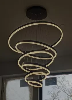 I recently revamped my dining area and decided to install this stunning piece of lighting that features six elegantly arranged rings, each emitting a soft, ambient light that can be adjusted to set the mood perfectly. The sleek, contemporary design has completely transformed the space, giving it a chic, modern vibe that I absolutely adore. The light fixture itself is a marvel of craftsmanship, with each ring meticulously designed to not only provide illumination but also to act as a statement piece of art. The dimming feature is particularly impressive, allowing me to create the ideal atmosphere for any occasion, from a bright, lively family dinner to a more subdued, romantic evening meal. Installation was straightforward, and the light's energy efficiency is remarkable, adding a touch of sophistication without the worry of high electricity bills. It’s not just a light fixture; it’s become the centerpiece of my home, drawing compliments from every guest. Truly, this lighting has elevated my living space to a new level of elegance and style.