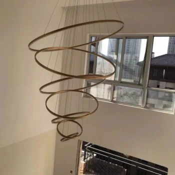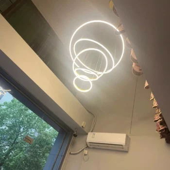 Step into the world of modern lighting with our stunning Nordic LED Chandelier, designed to be the centerpiece of your home or commercial space. The sleek, circular design, combined with the warm glow of LED lights, creates a sophisticated ambience that is both inviting and mesmerizing. Perfect for your living room, dining area, staircase, or kitchen, this dimmable pendant lamp is a harmonious blend of functionality and style.