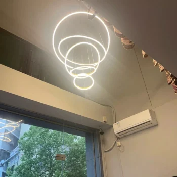 I recently installed this breathtaking lighting feature in my open-concept living room, and it has utterly transformed the space. The unique six-ring design creates a focal point that is both artistic and functional. The ability to adjust the brightness is fantastic, allowing me to set the mood for any occasion, from a bright, energizing morning to a cozy, intimate evening. The LED lights emit a warm, inviting glow that enhances the modern aesthetic of my home without overpowering it. The installation was surprisingly straightforward, and the energy efficiency of the LED technology is a major plus. It's not just a light fixture; it's become a centerpiece that elevates the entire room.