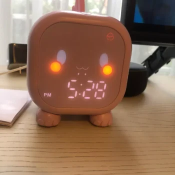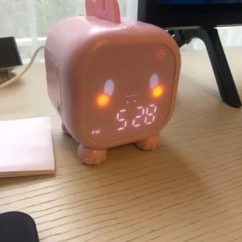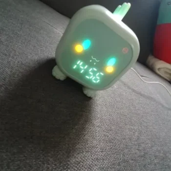 this clock is wonderful. the dinosaur design is cute and appealing to kids. the voice control is intuitive and works well. the night light provides a soothing glow that helps my child feel secure at night. the alarm is easy to set and wakes them up gently. it’s also built to last, with sturdy construction. it’s been a great addition to our routine, making mornings easier and nights more comfortable. highly recommend to any parent looking for a fun and functional alarm clock for their child.