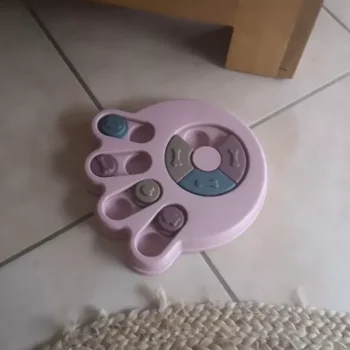 Looks good. Well made. Perhaps too well made. This is clearly above the skill level of our Maltese Terrier, who opens the flip top lids of another puzzle and just rotates and vacuums up the treats (without lifting individual lids). So we thought she was ready for 2.0. Apparently not. Even if I show her the rotate-the-bone-to-release action, she can't pair that with the open-the-drawer action to get the treats. Maybe larger ahem...smarter (?) dogs can enjoy this. Our pup looks at me like "Seriously? What the *bleep* do I do with that?"
