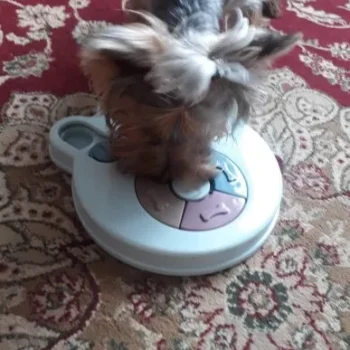 I love my dog more than life itself. He’s a rescue so not sure of his age. We think 15 (going on 3). Bought this puzzle hoping he would have fun and use it. Had no clue how fast he took to it. He’s not the most ‘intelligent’ so I wondered but he got the treats so fast. He hasn’t used his paws yet to move the pieces around, just uses his nose, but he’s doing it. Everytime he gets one I cheer for him and his tail wags like crazy and he continues on. He love his puzzle. I can’t wait to get him more so that he will get that brain going when I’m at work during the day (even though he’d probably play with it before I am even out of the driveway)