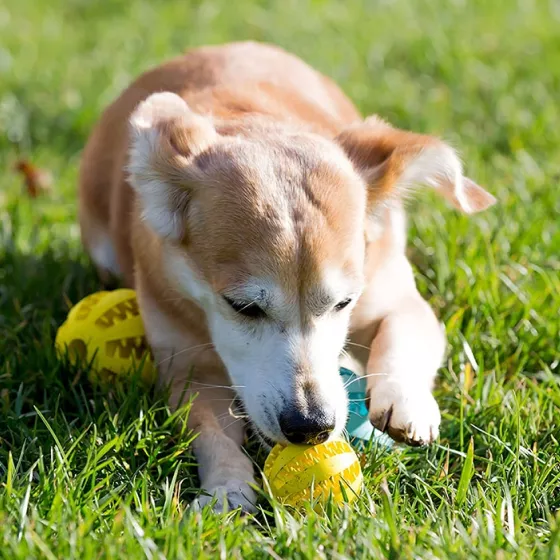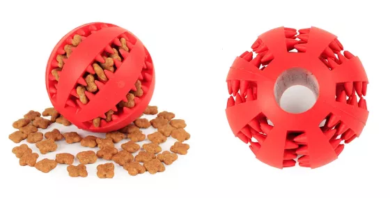 This toy was our desperate attempt to get out 10 months husky to chill a little. To be honest, I was doubtful that it would work. However, this toy definitely exceeds all expectations. She is playing with this ball for an hour daily, which is amazing. I also use it sometimes as a slow feeder - using not treats, but her food to fill the ball. Great toy.