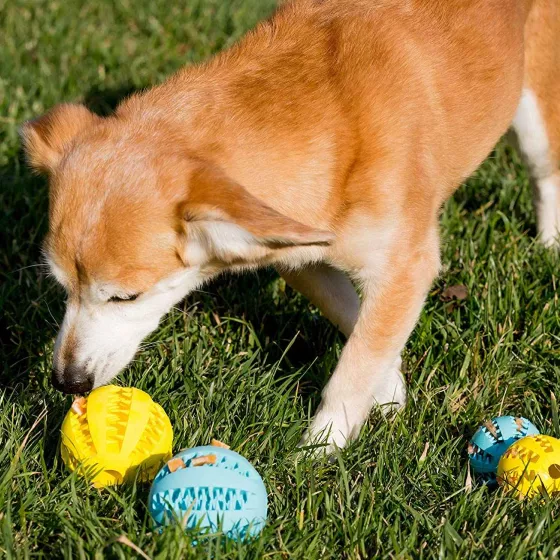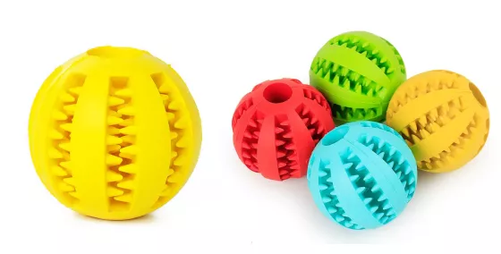 Unlike other ordinary dog toys made from low-quality rubber, our rubber is elastic while resisting bites and tears from the most aggressive of canine mouths. The material is non-toxic and non-abrasive for safe biting. The ball is available in four colors: red, blue, green, and yellow.