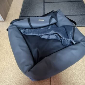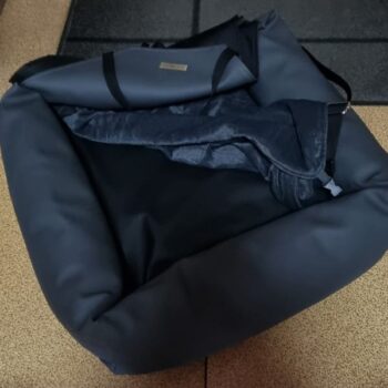 I really liked how simple it was to set up, and my dog absolutely loved it as a comfy bed. We used it on a two-day road trip, and it was just perfect. It's like a special seatbelt for the dog because he can snuggle up in the bed and won't go flying forward if we have to hit the brakes suddenly. The travel bed also has two handy side pockets where you can easily store your leash or other items. We were so happy with our purchase because it kept our dog in his seat and prevented him from jumping all over our laps. I highly recommend this bed to anyone looking for a great solution for their furry travel buddy!