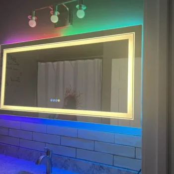 This LED Vanity Mirror stands out for its sleek design, advanced features, and ease of use. Its versatility in light modes makes it ideal for various activities like applying makeup, shaving, or simply admiring your reflection. The RGB backlight adds a contemporary flair to any bathroom, making it not just a mirror but a statement piece. With over 10 years of experience in crafting superior quality mirrors, we assure reliability and durability in every product.