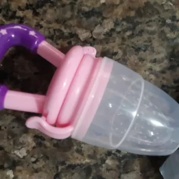 Got this for my 5 month old who just started trying food and has been teething since 3 months with no progress. I used the smallest one with frozen blueberries and she loved it. She can hold it herself with little help and I love that it can be cleaned very easily. We had a mesh feeder and tossed it because it is so hard to clean really well and just gets floppy and gross when the food thaws. This is a much better alternative and great price. My only concern is that the nipple piece can be removed too easily but hasn’t caused any issues yet.