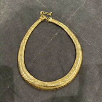 ⭐️⭐️⭐️⭐️⭐️ This choker is an absolute game changer in the world of fashion accessories! After a lengthy period of searching for something distinctive and unique, I can confidently say that this piece has exceeded my expectations. The fact that it does disappoint in any aspect is a testament to its exquisite style and design. The spiral design incorporated into the choker gives it an edgy vibe which blends seamlessly with sophistication. It's not just your regular accessory; it's a statement piece that adds character and flair to any outfit you choose to pair it with. Whether you're going for a casual look or dressing up for an evening event, this choker serves as the perfect addition. One might expect such a chunky piece to be heavy around the neck, but surprisingly, it’s quite the opposite. Despite its bold appearance, it remains lightweight making comfortability one of its key features. You can easily wear this all day long without feeling weighed down or uncomfortable - truly designed keeping user comfort in mind! As far as quality goes, I must say that there are no compromises on this front either. The top-notch quality is evident from first glance itself – you can tell every inch of this product was made with utmost care and precision by skilled craftsmen who take pride in their workmanship. Overall, my satisfaction level with my purchase is through the roof! There’s nothing like adding new pieces to your collection especially when they’re as stunning as this one. Now eagerly looking forward to flaunting my new favorite accessory at upcoming social gatherings! So if anyone asks me about recommendations for beautiful yet comfortable jewelry pieces - well let's just say they'll be hearing all about this fantastic find!