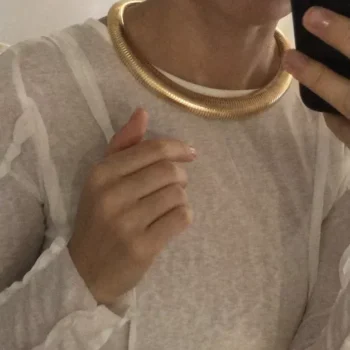 Five stars from me! I'm usually of a minimalist when it comes to jewelry, but this choker has totally won me over. Its bold spiral design stands out without being overbearing or tacky – just the right balance between statement-making and subtlety. Plus, despite its 'chunkiness', it doesn't feel heavy around my neck at all; in fact, I often forget that I'm wearing anything until someone compliments me on how great it looks (which happens almost every time!). So if you're on the fence about getting one...just go for it!