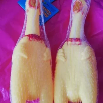 Made of 100% non-toxic rubber, our chicken measures 11 in (31cm) in length, our loud, fussy toy can go with you from parties to concerts and so much more for a screamin’-good time.