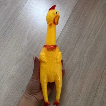 Made of 100% non-toxic rubber, our chicken measures 11 in (31cm) in length, our loud, fussy toy can go with you from parties to concerts and so much more for a screamin’-good time.