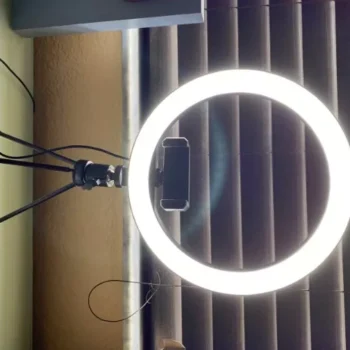 This ring is just what I needed to use with my desktop for all these video meetings. The tripod is short for behind the monitor but I was able to easily put the folded tripod in a shelf just above and the ring works just fine. Love the size for my large monitor. Great price, too!