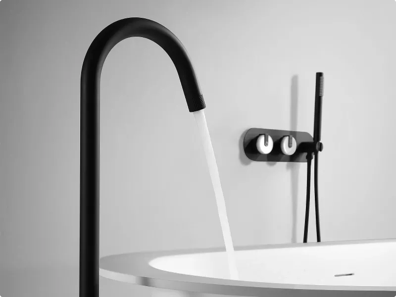 Embrace the fusion of luxury and practicality with our freestanding bathtub faucet. Its dual handle design ensures precise control over water temperature, while the inclusion of a handheld shower offers flexibility, whether rinsing off after a bath or cleaning the tub. The contemporary design, paired with the matte black finish, suits any modern bathroom, making it a versatile addition to your home.