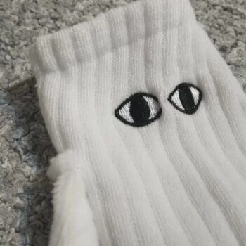 these magnetic attraction cartoon eye socks are fantastic. the design is playful and cute, and the magnetic feature adds an extra layer of fun. the socks are very soft and comfortable, perfect for wearing all day. the quality is top-notch, with excellent stitching and bright, long-lasting colors. i love matching socks with my partner, and these make it even more enjoyable. they are also very practical, keeping our feet warm and cozy. we’ve received so many compliments on these socks, and they always make us smile. i highly recommend these to any couple looking to add a bit of fun and connection to their daily routine.