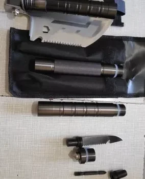 This survival tool is seriously awesome. It's easy to assemble and has multiple uses. I can start a fire using the Flint and dig a hole for the fire to sit in too. It's easy to assemble and great quality. It's nice and solid so it should have no problems holding up to whatever we subject it to, and for the price you can't beat it. Happy campers here
