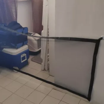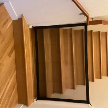 So this gate works great on hard surfaces. The hooks are attached to the wall with a sticky side (easily and clean removal from wall) so they will not work on soft surfaces. But the easy on off hook attachment makes it easy for us and the kids to get passed without the puppy being able to move it. Also love that it’s easy to store. Simply roll it up and throw on the closet shelf when not needed instead of the bulky plastic ones.