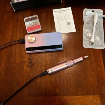 This rechargeable nail drill machine is amazing. it’s very easy to use and perfect for at-home manicures. the drill is powerful and has multiple speed settings for precise control. the rechargeable battery lasts a long time and makes the drill very portable. the attachments are great and cover all my nail needs. the drill is quiet and doesn’t get hot, even with prolonged use. my nails look professionally done every time. it’s a fantastic tool that saves me time and money. i’m very happy with this purchase and highly recommend it to anyone who loves doing their nails. it’s a great investment for maintaining beautiful nails at home.