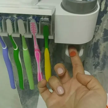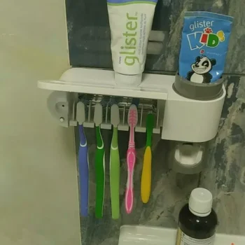 Our toothbrush holder holds up to five toothbrushes at once, all for UV sterilization. It made of plastic and measures 8.1 x 5 inches. Never worry about bathroom sink clutter or possible airborne contamination again with our shut-close UV chamber that keeps your brushes clean and virtually germ-free.