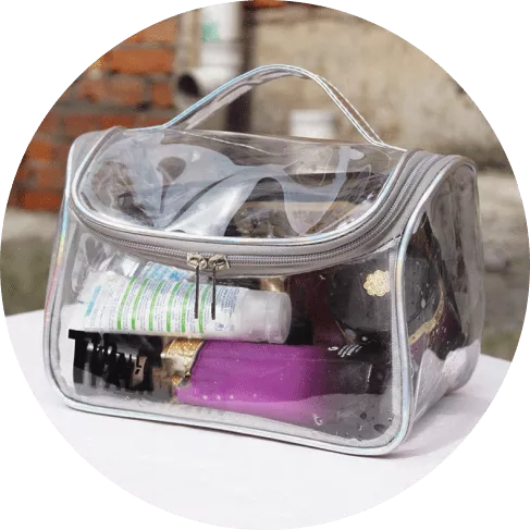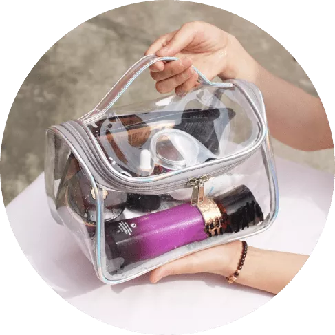 This lovely cosmetic bag is made with durable, transparent PVC material and features a large zipper opening.