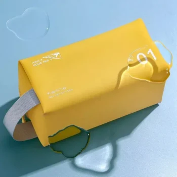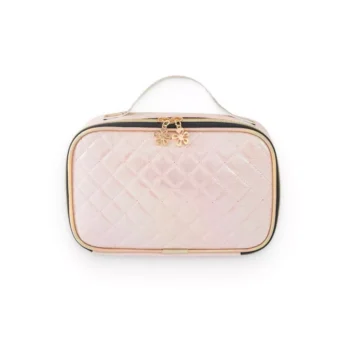 This lovely cosmetic bag is made with durable, transparent PVC material and features a large zipper opening.